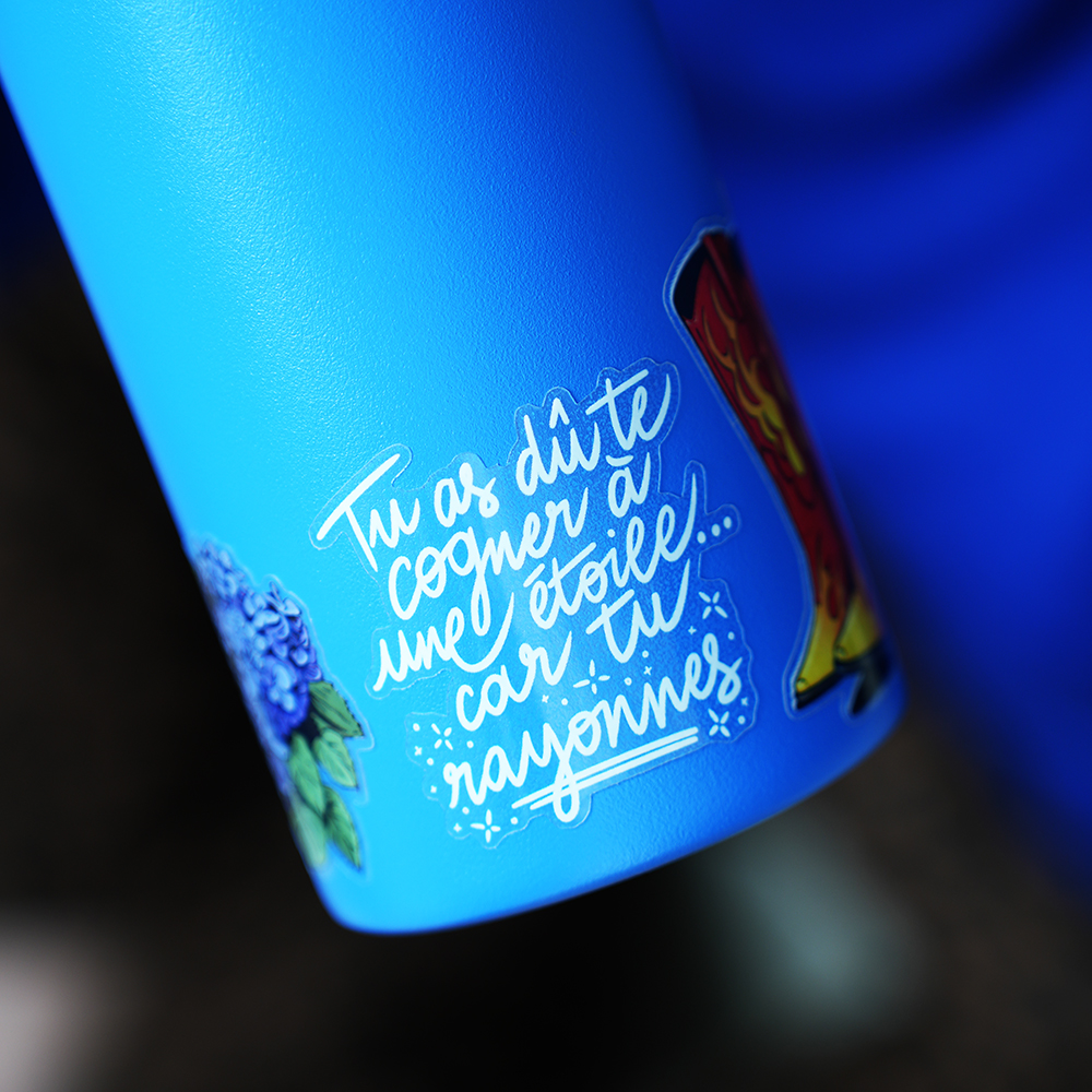 Sticker illustré à la main et colorisé à la tablette. Fond transparent donc pas de contour blanc une fois collé.